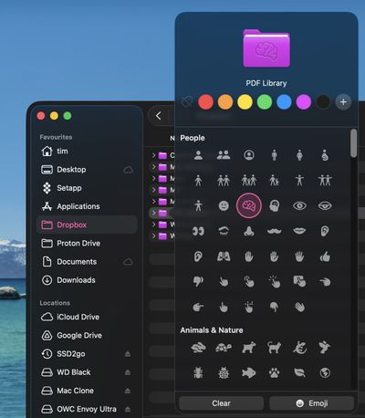You can now customize the look of individual folders with the use of color tags, emoji, and other select glyphs. Simply right-click (Ctrl-click) on a folder and choose the Customize Folder... option in the contextual menu.