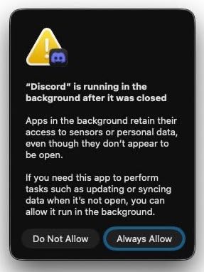 macOS now notifies you via a new popup when apps attempt to run a daemon after they have been closed. You can "Always Allow" the background process to run or you can deny it permission.