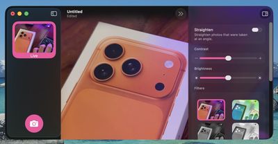 A new Magnifier app uses the iPhone camera's zoom feature to zoom in and view objects or text up close, beaming the feed to a Mac through Continuity Camera. There are options for creating multiple live session windows for tracking, for example, a presentation while also zooming in on a textbook, and each view can be customized with different brightness levels and color and contrast filters to suit individual needs.