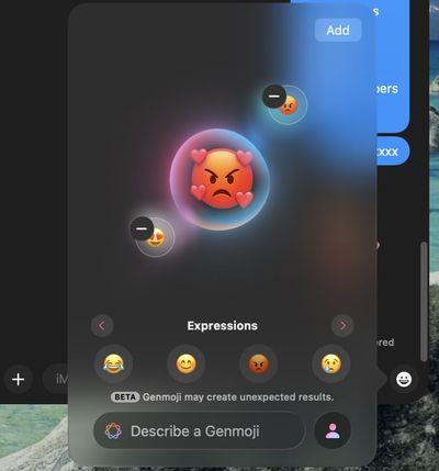 Genmoji supports combining two or more emoji together to create a new character. You can also combine existing emoji with text-based descriptions to tweak them, which is a more convenient starting point for generating something new.