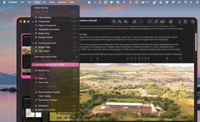 If you're viewing PDF documents in the Preview app, there's a new View option in the menu bar that allows you to Use Dark Appearance for PDF.